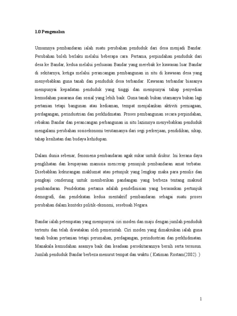 Faktor yang mempengaruhi pembandaran doc 1 0 pengenalan umumnya pembandaran ialah suatu perubahan penduduk dari desa menjadi bandar .